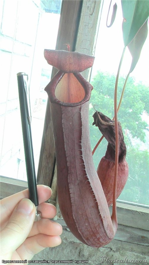 Metabolism, прилагаю снимки. Непентес приобрели в середине марта в крохотном горшочке, пересадили, пошёл в рост, произвёл три гораздо больших, чем магазинные кувшина, кувшинчики растить и дальше продолжает.