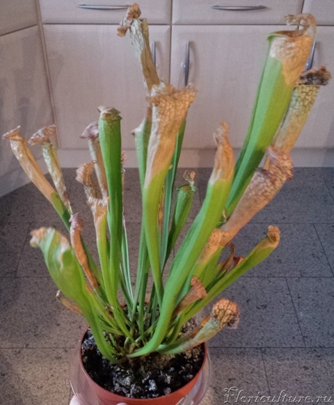 Для саррацений правильный грунт, дист. вода, освещение (6 часов прямого солнечного света в день) и зимовка - основа норм. жизни.