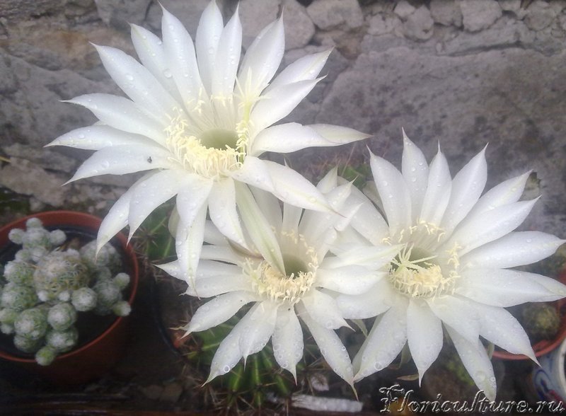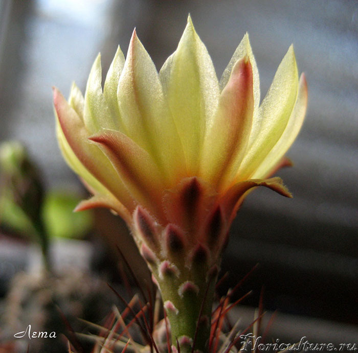 мой "советский" кактус цветет ежегодно, зимует обыкновенно, т.е. на подоконнике, в отапливаемой комнате, на северном окне, с поливом по мере высыхания грунта, но! как только минует угроза весенних заморозков, перебирается на свежий воздух и сразу появляются бутоны и цветет все лето, раскрывая сразу по несколько бутонов, растет в небольшом горшке.