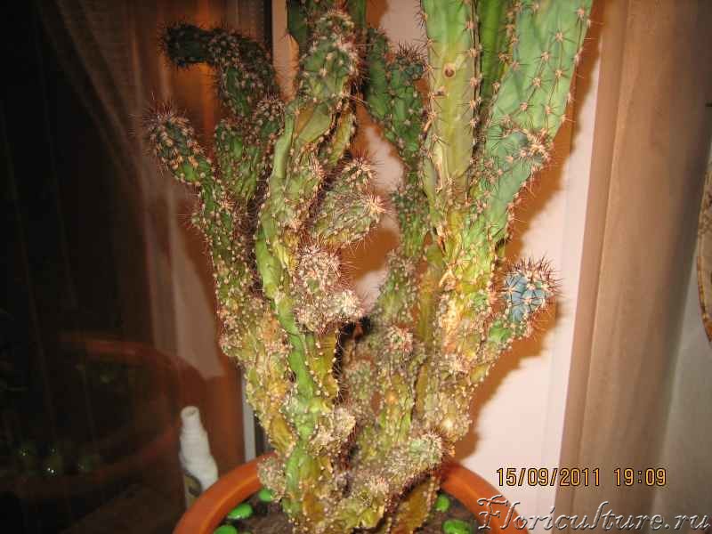Помогите!!! Уезжала оставила цереус на мужа.Стоял на лоджии. Она застекленная, но он не опускал жалюзи и открыл окошко.Пробка была у основания но так много и какие-то бляшки черные. сухие, корешки на стволиках выросли короткие.Что делать, с ума сойти.Старичку цереусу более 25 лет.Такой красивый был, а теперь усох.
