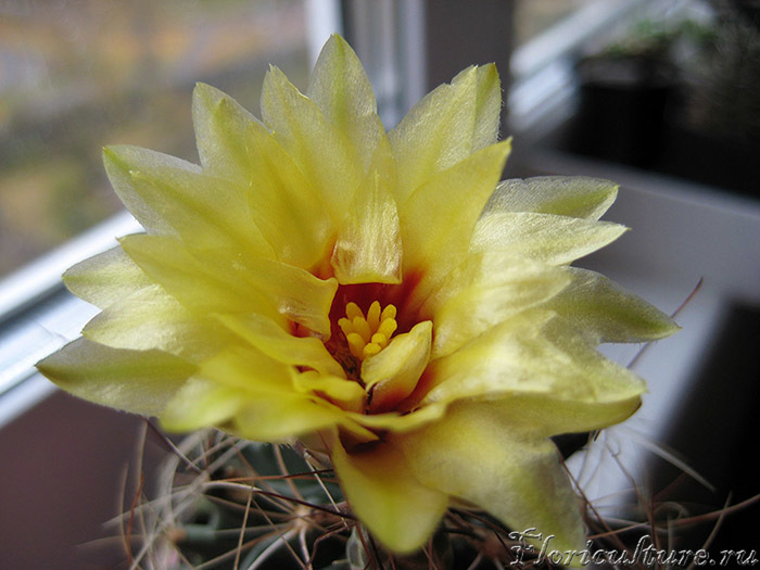 Прошлогоднее цветение Хаматокактуса щетинкоколючкового (Hamatocactus setispinus)