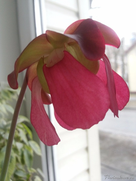 На предыдущей странице саррацения Wrigleyana природный гибрид пситтацины и леукофилы зелёная с розовым румянцем.Леукофилы цветут рано весной,а пситтацина летом.либо искусственный гибрид тех же саррацений но уже материнское растение леукофила если не ошибаюсь scarlett belle она вся розовая как ваша.скорее всего .