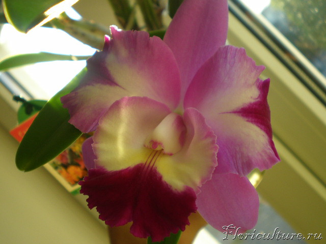 У меня расцвела вот такая орхидея Blc. Haadyai Delight x Mari’s Song # 1 dark Pink Yellow in the center.