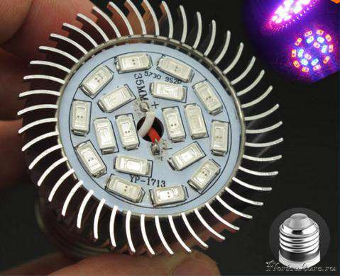 Лично я заказал на eBay светодиоды полного спектра (светодиоды УСКИ). Их спектр включет (кроме красного и синего) инфракрасное, УФ излучение,по чуть-чуть зелёного и жёлтого (светят красно-синим светом как и фитолампы) и имеет пики на необходимых растениям частотах.