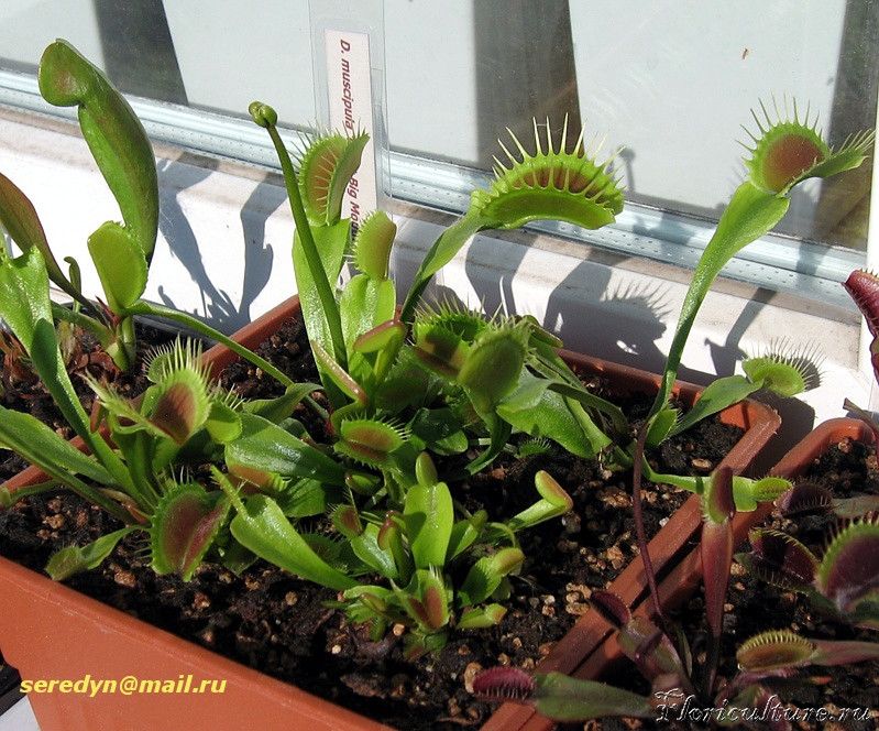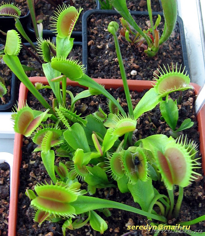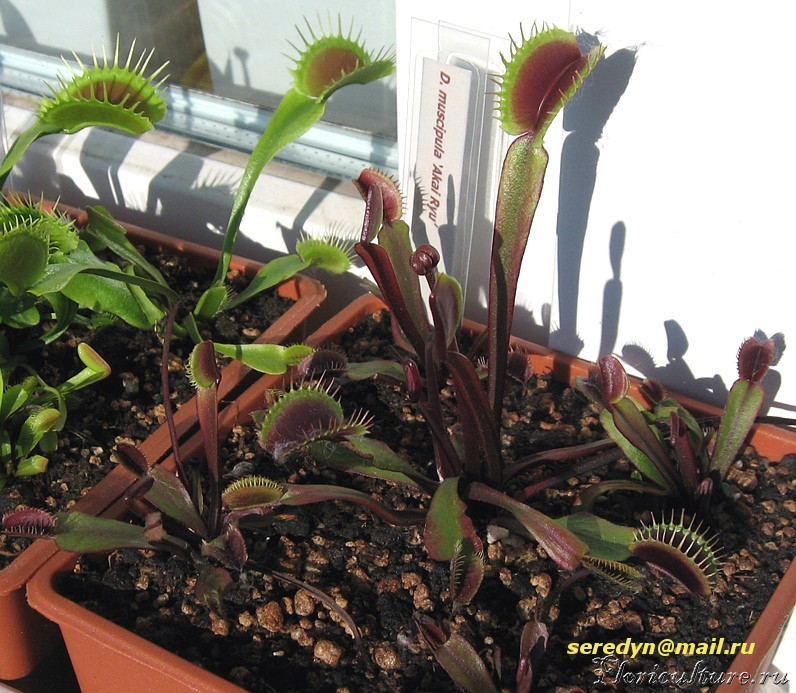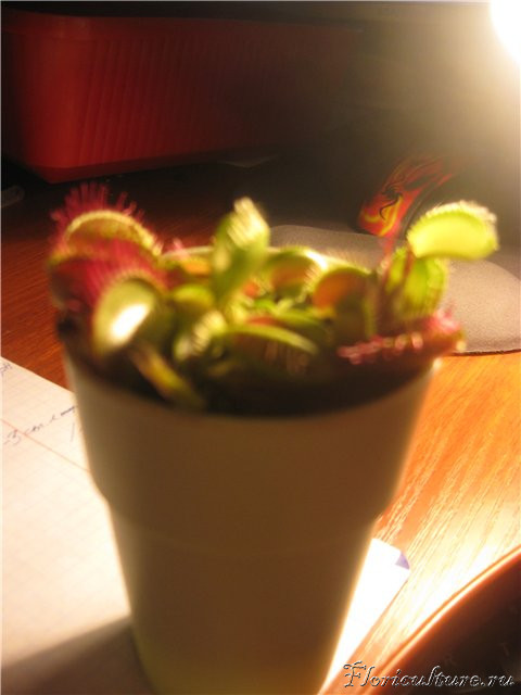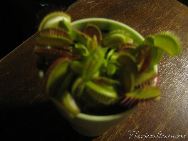 Да, кстати, а вода у вас не из дистилятора? Она бывает слегка слабощелочной. Имеет смысл подкислять. Но и чрезмерное закисление может вызвать пожелтение черешков и почернение краёв ловушек.