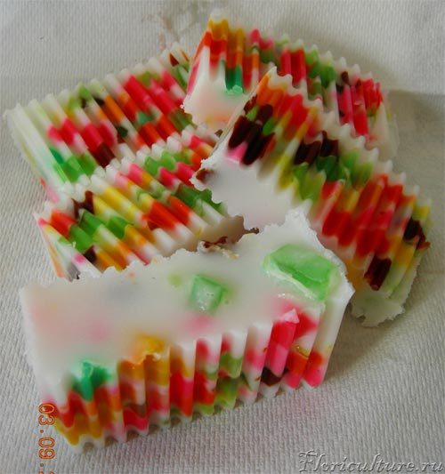 Iriska писал(а):Ну вот я новое мылко сделала из основы... Летнее, веселенькое, пахнет вкусно :yes: