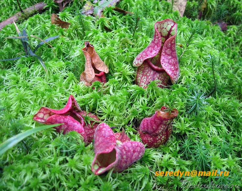 Всё-таки в Канаде она доходит до 62 градуса северной широты! Правда наша погода полна сюрпризов. Могут ударить морозы без снега, а на следующий день будет плюсовая температура. Такие колебания губительны для Саррацении.