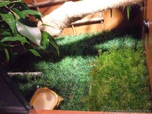 Предназначался он для террариума с животным. В течение почти 2-х месяцев мох прекрасно себя чувствовал. Уход самый простой: ежедневный полив и опрыскивание в течение дня около 5-10 раз. Влажность всегда была на уровне 50-70%.