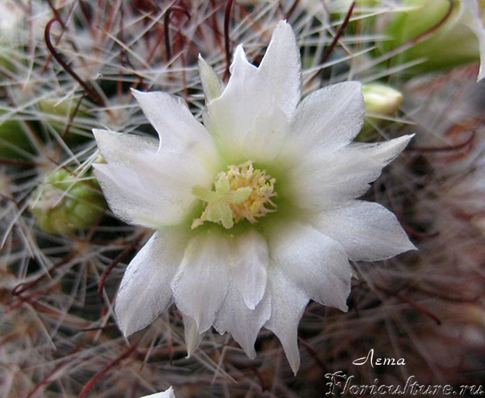 Ооочень она мне нравится. И тем, что цветет с весны и все лето. И тем, что цветочки у нее относительно крупные для маммиллярий - диаметром 2 см. И тем, что цветочки у нее красиво-белоснежные.