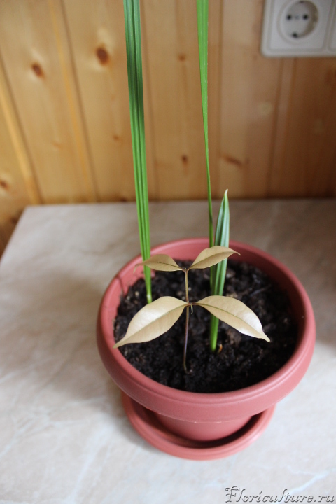 Доброго дня суток,форумчане! :D Обращаюсь за помощью в опознании растения! :( Решила я развести финиковые пальмы(планирую переезд в частный дом).Решила сама,с нуля.Были закуплены"чудо плоды",т.е.вяленые финики,обычного качества.Мной же съедены,косточки вымыты,и просто вставленны в грунт для пальм.Через 1.5 месяца,вылезло 2 ростка(косточек было 5).Я решила их подкормить и вставила палочки-удобрения ETISSO.А ещё через 1.5 месяца вылезло непонятное чудо с бледно-розовыми листьями(листья были попозже,сначала росток с двумя усиками) :heap: .Я было подумала что сорняк и всё такое.Хотела выдернуть,но...ствол какой-то упругий.Расковыряла малость земельку,дабы не повредить сие чудо,и оказывается,что данный экземпляр растет из косточки.Повторяю,съедала все финики сама,никаких непонятных семян.Будьте любезны,может кто опознает сие чудо!А то месяц покоя нет,весь инет перерыла!Заранее благодарна!!! :surp: