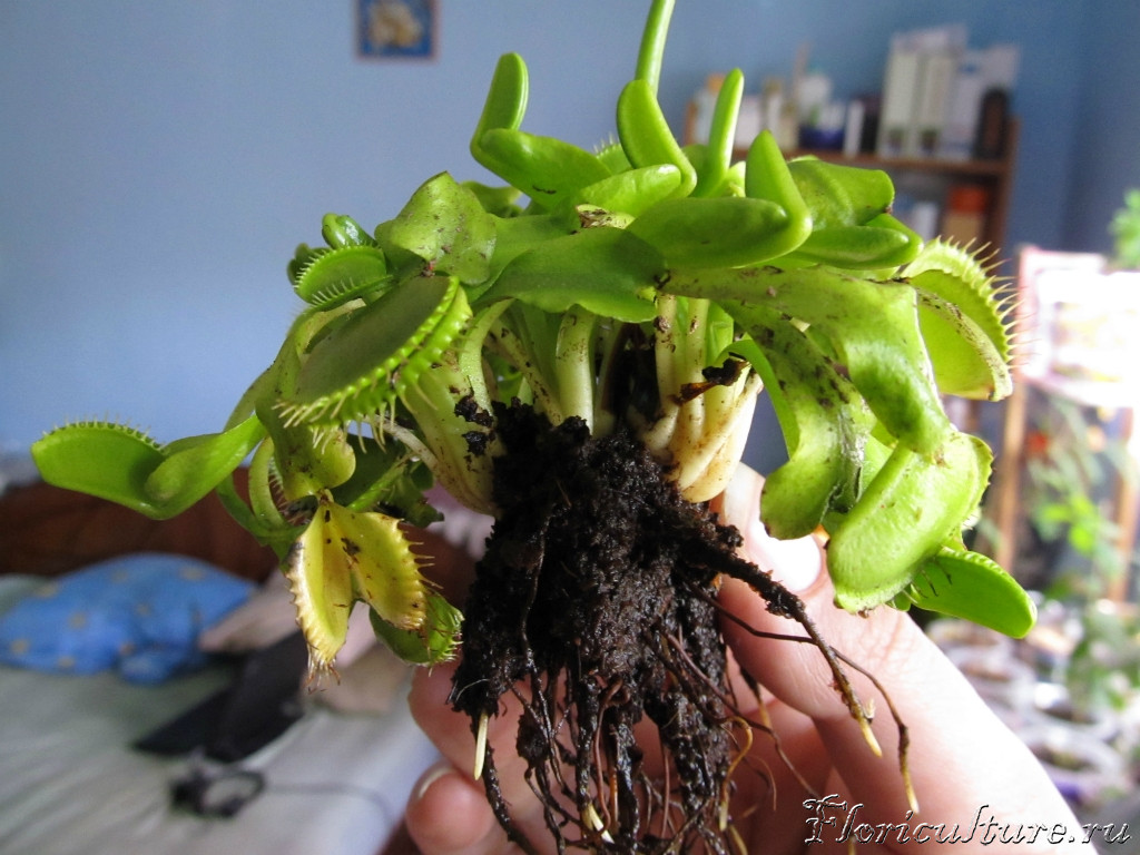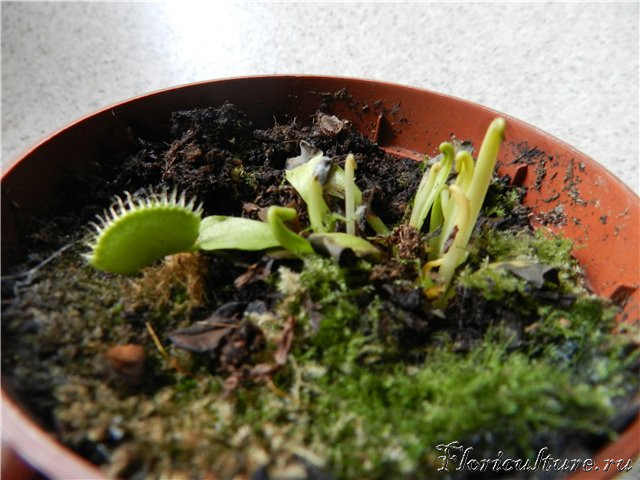 Сегодня проводил операцию по пересадке перезимовавшей, покупной мухоловки (покупалась зимой(!). У растения жуткий стресс... Обрезал 2 цветоноса, еще 3 только появились, луковицы в упор не наблюдаю...
