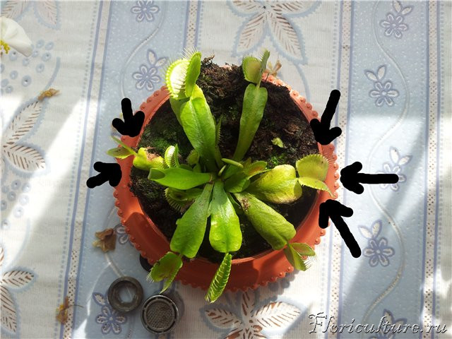 Когда принесли, ловушки не закрывались..наверное стресс. на третий день стали закрываться... кроме одной.. а одну пришлось отрезать, стала чернеть....