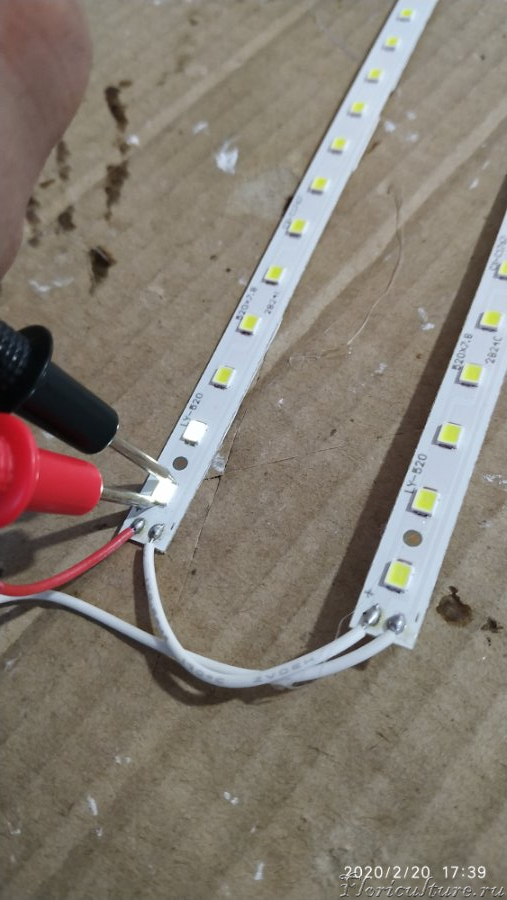 Линейный светильник, 8 алюминиевых плат по 7 светодиодов, каждая плата это последовательная цепь диодов, так же все платы МОЖНО соеденить последовательно и установить один драйвер, НО у меня на каждую плату установлен свой драйвер и вот тот самый случай приемущества, остальные платы в работе и в принципе ремонт не к спеху ( по мере свободного времени к примеру), визуально мы видим что все светодиоды данной платы еле еле горят и сигнализируя нам что драйвер живой и проблема именно в светике, ну а как найти паршивца далее в картинках чуть позже !!!!
