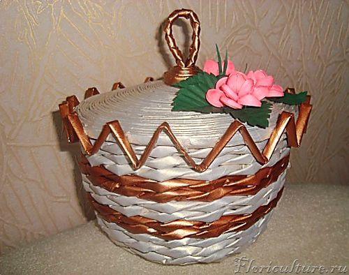А это очередная корзинка из газетных трубочек.