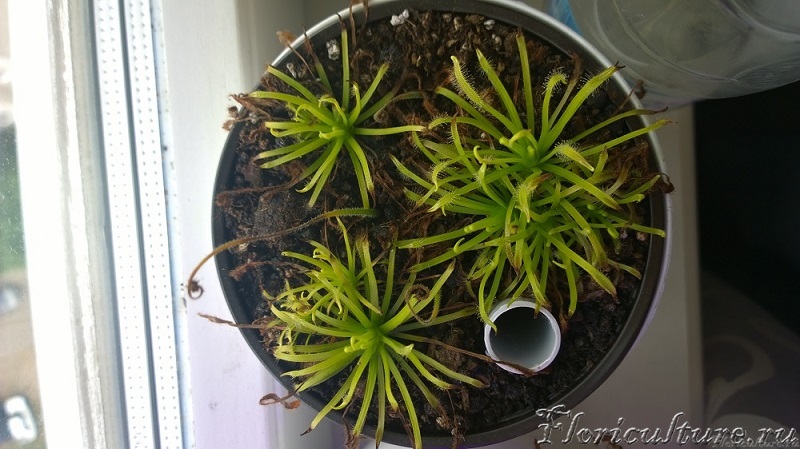 Добрый день! Сегодня заметила, что в горшках моих росянок поселились насекомые (малюсенькие серые жучки), еще меньше подур. Их целое полчище. Такое впечатление, что живут они внутри, в коме торфа. Росянки (у меня спатулаты) пока растут хорошо, но боюсь, что насекомые эти бед натворят. Что делать? Пересаживать?