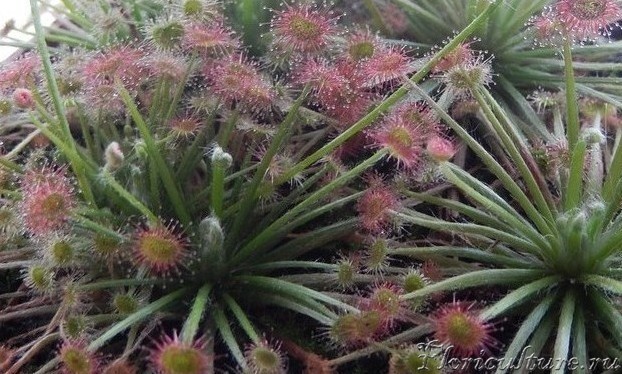 В общем, давно хотелось росянку или мухоловку, но всё на потом откладывала. А на прошлой неделе совершенно случайно в Metro увидела - стоит она там, одна-одинёшенька, и вид у неё... ну, явно сдохнет, если там останется. Решила - возьму) Принесла домой это чудо, поставила на восточную сторону, на застекленный неутепленный балкон. Этаж шестой, напротив высоких домов нет, утреннему солнцу ничто не мешает. Купила в автозапчастях дистиллированную воду, налила в поддон. Воду она оттуда выхлебала минут за 15. Налила еще. В общем, стоит в поддоне с водой. Стоит уже пятый день. Капелек нет, выглядит не айс=( Тему всю не осилила, первые 50 страниц только прочитала. В голове каша, проясните, пожалуйста, опытные люди - что с ней сейчас делать? Пролить дистиллятом - надо? Я не проливала( Пересаживать сейчас - нужно? Или пусть пока так сидит, пока от стресса не оправится? Сколько вообще, по вашему опыту, они акклиматизируются? Когда начинать волноваться, что что-то не так с условиями? Кстати, на балконе ночью температура ощутимо падает, т.к. стекление негерметичное... градусов до 12 - 15. Ей это может вредить? У меня Drocera Aliciae.