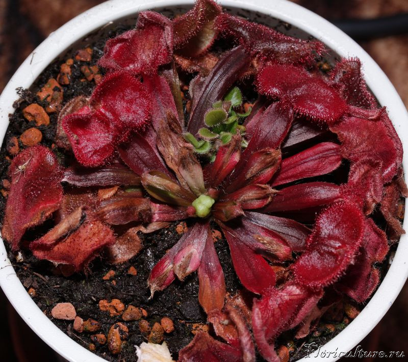 Это D. hamiltonii то плохо растёт и гибнет??? :D У меня она до сих пор на открытом балконе стоит, уже и нулевая температура была - ей хоть бы что! За лето разрослась и вглубь и вширь. Только позеленела правда... Козырёк из поликарбоната совсем УФ не пропускает. В прошлом году отчасти из-за неё пришлось пересаживать и выбрасывать субстрат от Цефалотуса. Замучился выдёргивать их! Одну розетку выдернешь - через пару месяцев три новых появляется :ir: