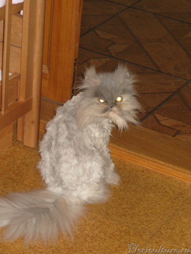 В связи с новыми обстоятельствами, кошка не получала должного ухода. Пришлось её обстричь, чесать небыло возможности.
