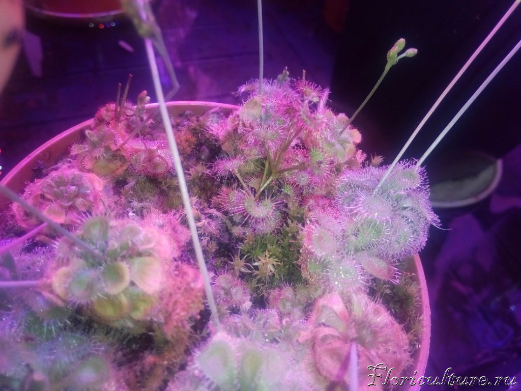 Купил в марте двух росяночек (Burmannii и Spatulata var. Lovellae) и замучался... Жили они в комнате, солнца хватало, но хирели и подгнивали - слишком высокая влажность и не было нормального движения воздуха. А после недавнего похолодания я им сказал: "Все в сад!" и вынес на застеклённый балкон. От обжигающего дневного солнца прикрыл шторкой из обычной полиэтиленовой плёнки (получилось рассеянное освещение как от утреннего солнышка). И буквально за 4-5 дней росянки воспряли духом. Появилась обильная роса, гниль сразу исчезла.