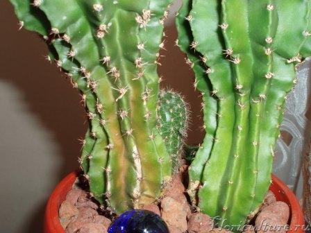 Простите, но фото я не могу показать. Почему то ни одна фотография не грузится пишет - общая ошибка. Мне пришлось его разрезать. Я привила к оставшемуся стволу малыша. Но скорее всего он погибнет. Жалко очень, такой красивый кактус был.