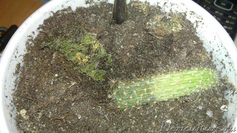 У меня остался всего один отросток.Я посадил его в землю,там где-то месяц он жил,корни пустил..Потом я купил специальную землю для кактусов.В ней он пожил 2 недели и недавно я заметил,что он тоже начал гнить!ОЧЕНЬ прошу.помогите.не хочу терять его,он мне очень дорог,связывает со школьными детскими воспоминаниями.Вот фото: