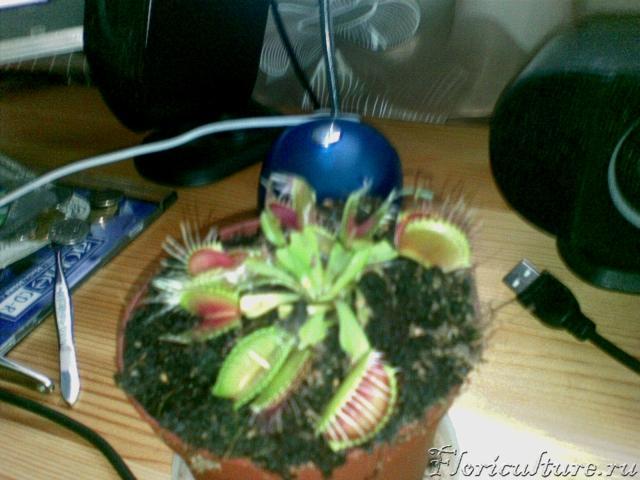 Вот обнаружил маленьку мухоловку вместе с большой. Даже не знаю откуда появилась (может сама выросла, может от луковицы пошло). Дело в том что ее закрываю листья большой мохоловки, да к тому же она готовиться к зиме. Может отсадить маленьку отдельно от большой и держать ее дома (не дать ей уйти в спячку)? Подскажите как лучше сделать?