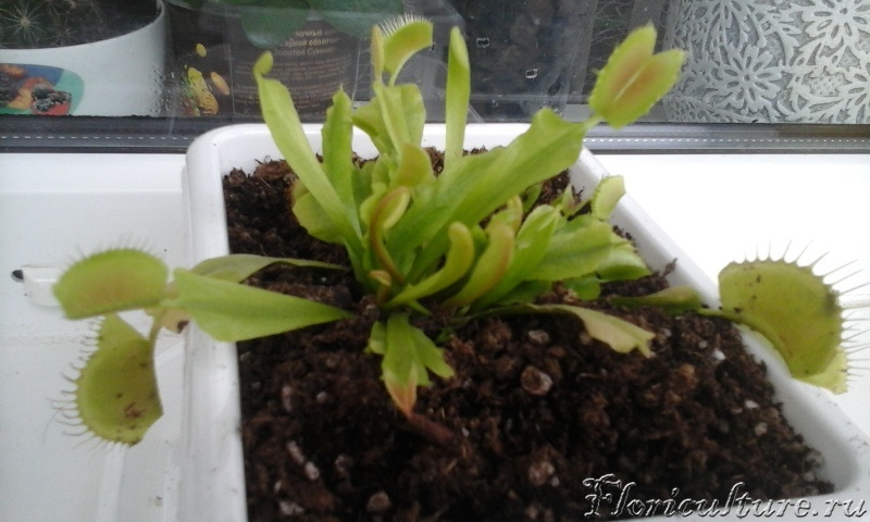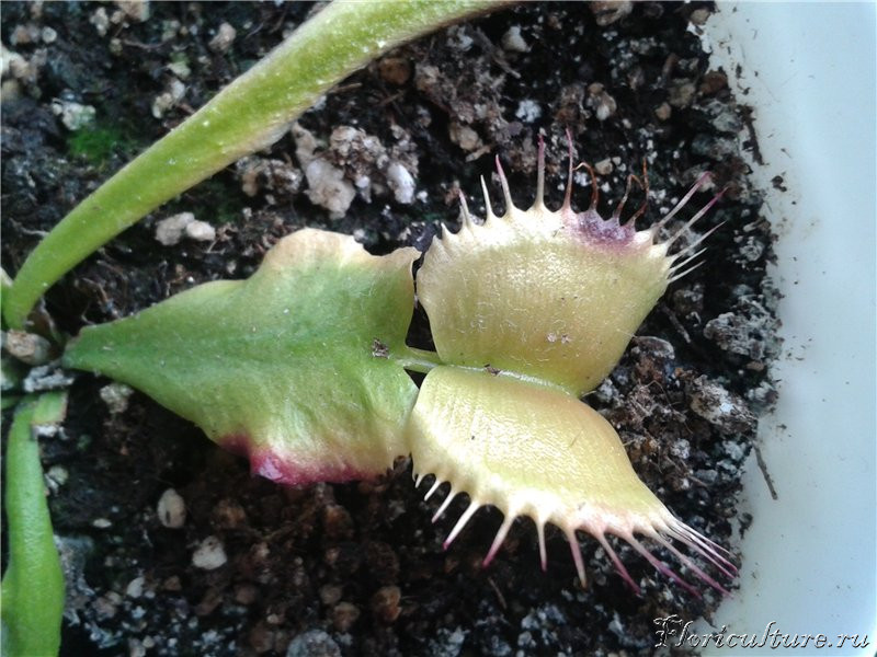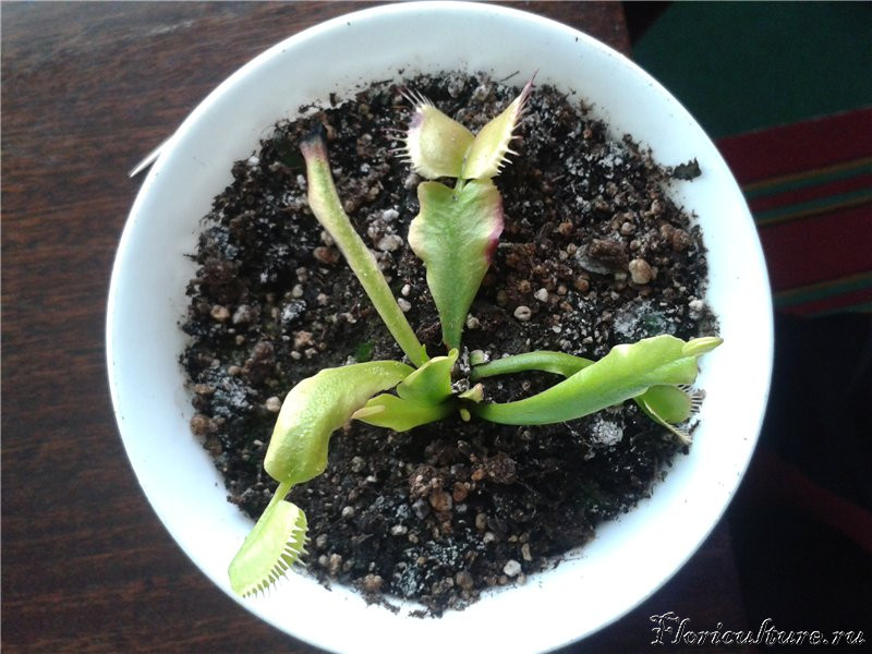 Привет. в марте месяце стала обладателем дионеи и обращалась на этот форум за советом. всем спасибо.Дионея растет, и постоянно появляются новые росточки. Но они какие то маленькие, недоразвитые. там не то что муха не поместится. комарик еле уместится( поймала 2 мошки) а на некоторых ростках вообще ловушек нет. на фото 2 большие ловушки это старые,которые при покупке были. остальные срезала а эти сынок очень просил оставить. Так что с моей мухоловкой, чего ей не хватает. Хотя ее внешний вид меня в целом радует.