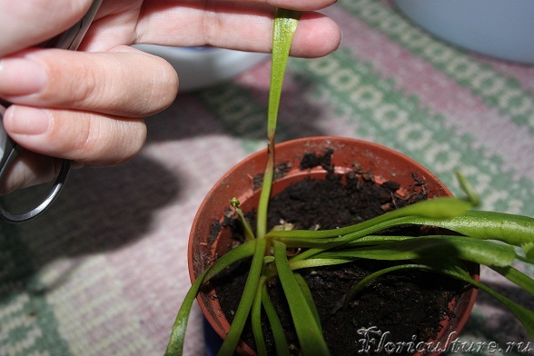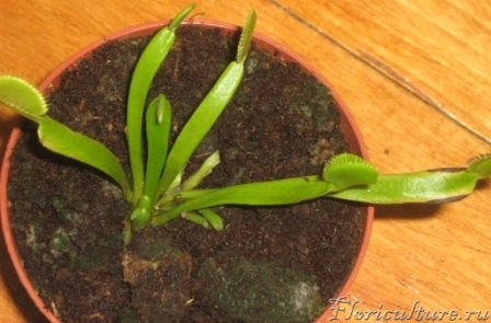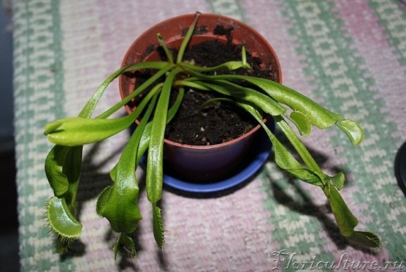 Когда ловушка отрастает до ловчих размеров, лист начинает чернеть и усыхать с краев, со временем пропадает.