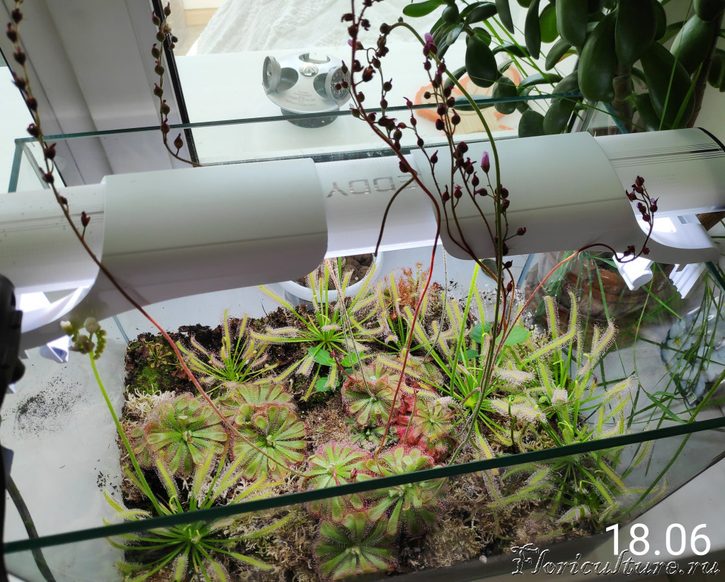 Уже второй год, полив дистиллятом, торф кислый огородник с перлитом, летом прямое солнце жарит, им нормально, они любят. Подсветка 12 часов круглый год.Ramon Rodriges писал(а): ↑Вт апр 20, 2021 18:00 А сколько по времени они ростут во флолариуме?