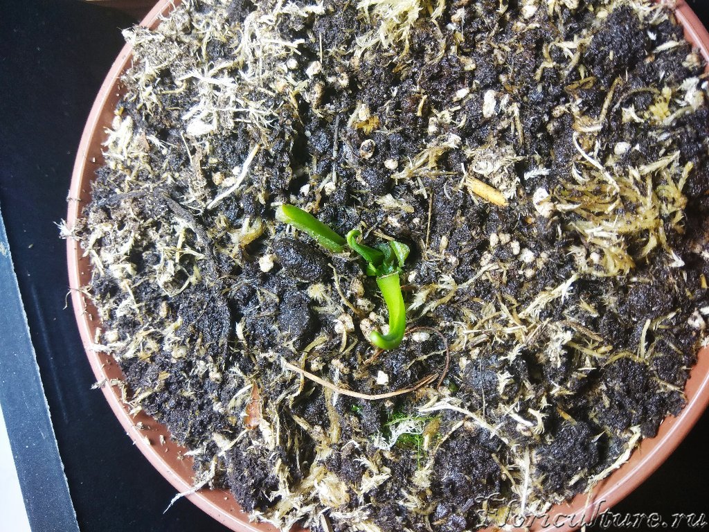 На фото видно прищипнутый цветонос два листа по больше и возле цветонос а ещё два новых.