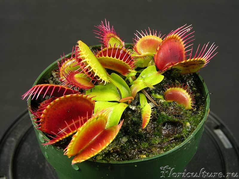 в течение вегетационного периода он выпускает листья, которые выдерживают устойчивые ловушки длиной до 5 см. Он конкурирует с Dionaea« B52 »B.Rice и Dionaea« DC XL »S.Doonan & M.Miller за название сорта, которое производит самые большие ловушки (но не самый большой общий размер листьев). Розетки листьев этого сорта могут достигать 20 см в диаметре, и он делится часто, чтобы произвести впечатляющие скопления роста. Внутренние поверхности ловушек ярко-красные , а края лепестков и все остальные части желтовато-зеленые