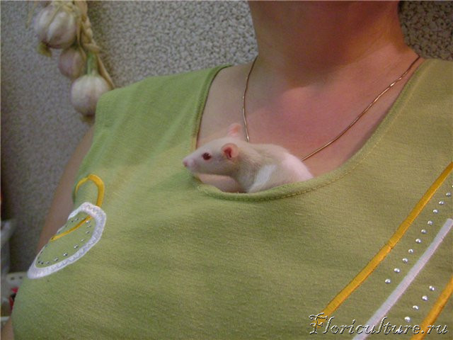 Кошка была когда-то, но папа говорит про кошек - "через мой труп!" и крыс был - Жорик! Такой славный был, умер своей смертью. Муж долго не соглашался на крысу, жалко Жорку было, да и смотреть, как умирал, жутко. А я на время отпуска у знакомой взяла крысу, мой как-то оттаял и дети подарили ему на день рождения Гошку! Так теперь нянчимся!
