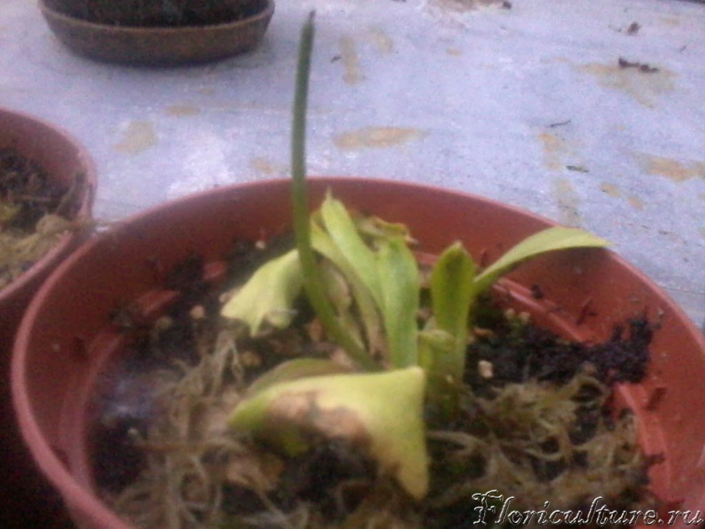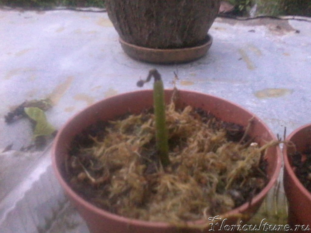 Детка цвести уже не будет. Новые листья мелкие. Старый цветонос, укореняю с марта.
