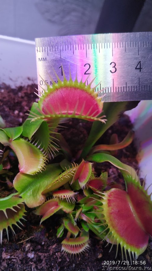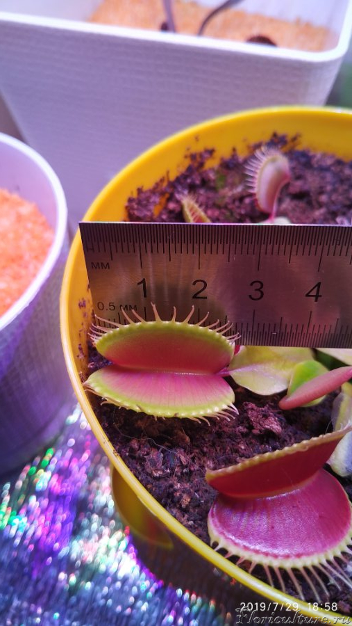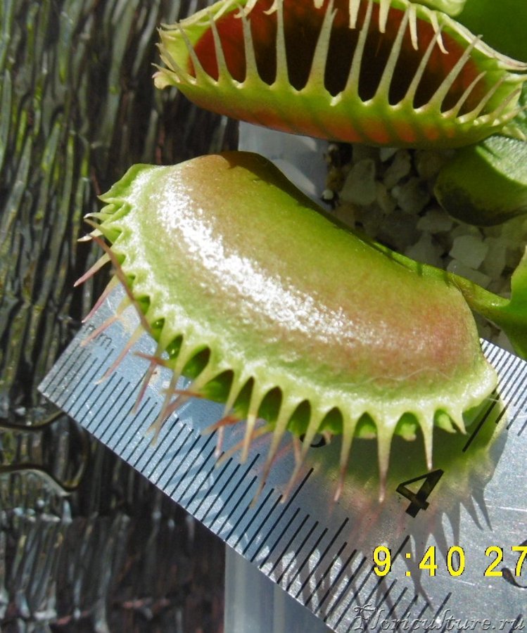 И номер 4 - продукт культурного обмена с Татьяной. Это уже другое растение. 2 см ловушки, но не смотря на похожесть с номером 1, обратите внимание, реснички-то красные!