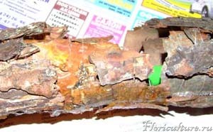 8. Эпоксидку смешала с кокосовой койрой измельченной и промазала промежутки в коре в том месте, где ствол склеивался с зеленой трубкой. Для прочности.