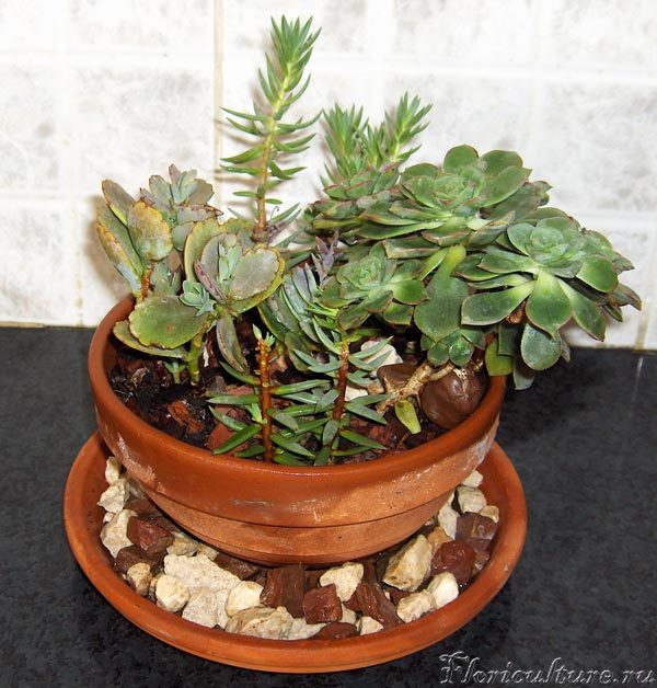 Всем добрый день! Я любительница не только хищных растений, но и суккулентов! Вот несколько месяцев назад составила композицию из некоторых своих любимцев, и вот , что получилось...Вот только проблема, я не уверена в названии самого правого растения, помоему это седум, но мне хотельсь бы услышать мнение спецов! И за одно оцените мою работу, пожалуйста, а то мне она как-то не очень нравится!!!!