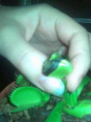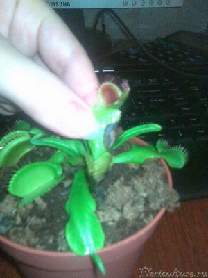 P.S, я начинающий цветовод, когда увидела это чудо за стеклом в одном большом магазине, прямо таки влюбилась, там сидела продавщица, которой видимо завезли 3,5 цветка дали книгу, сказали, читай! покупателям расскажешь. Толком она сказать ничего не сказала про него, но сказала, что он ЕСТ!! мух и периодически его можно кормить фаршем что б не умер, так вот сколько б я не читала о нем, ни где не видела информацию о фарше. Скажите, это продавец придумал от себя что ли?