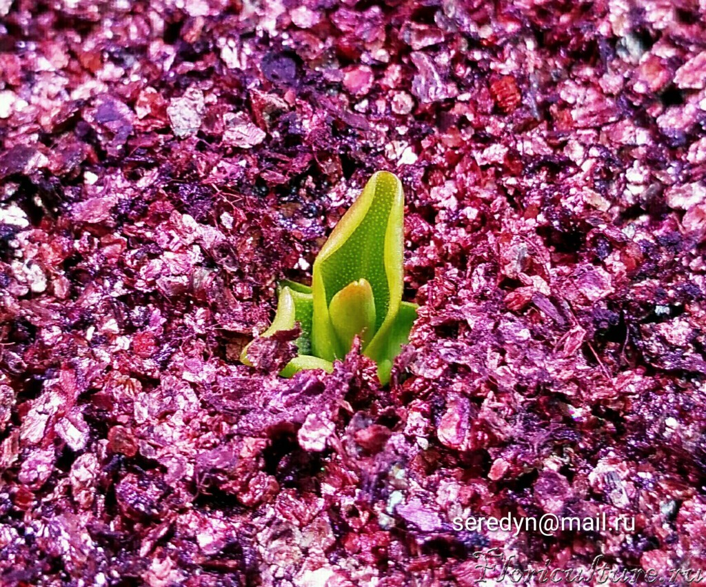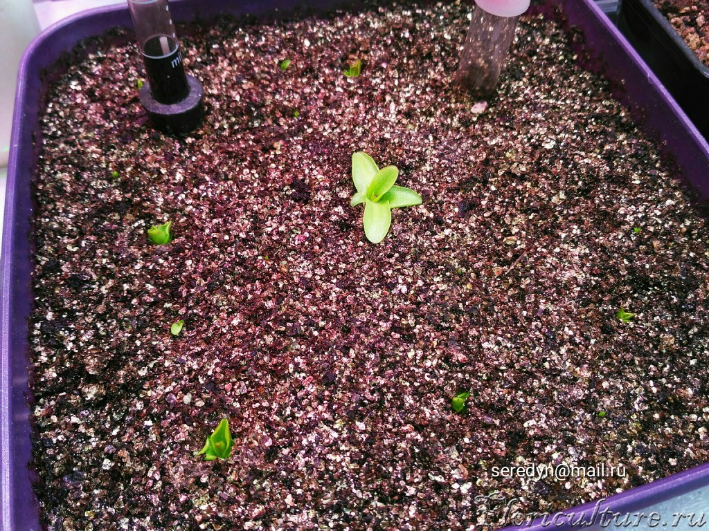 Горшок накрыл пластиковым колпаком. Свет как для росянок. Полив дистиллятом в поддон.