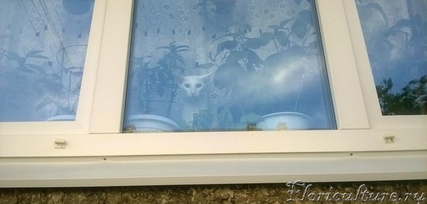 Она, когда маленькая была, сидела верхом на фаленопсисах, так виднее улицу )))