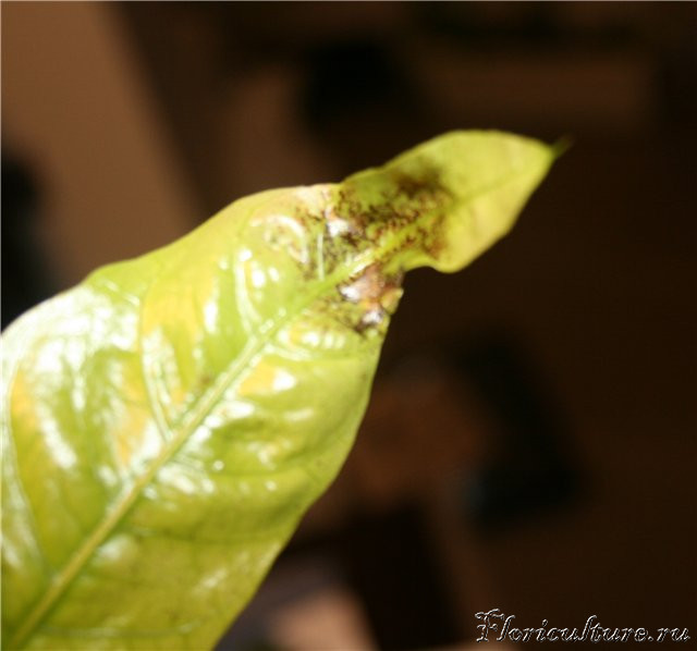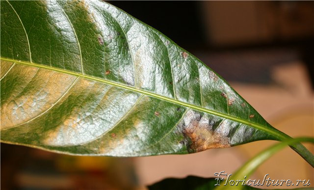 Это фото уже взрослого листа, а точнее во что эти почернения превращаются.