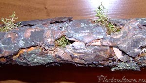 Хочу поделится опытом создания трубок.Берется пластиковая трубка,горячим гвоздем делаются дырки,внутрь набивается мох,в дырочки расположенные друг напротив друга пропускается проволока в оплетке (ей потом удобно закреплять растение к трубке).Трубка, в зависимости от диаметра, вставляется или надевается на горлышко разрезаной пластиковой бутылки(можно каплю клея),сверху трубка обматывается лыком (пальмовым,березовым,корой).Нижняя часть -более расширенная держится плотно за счет давления земли,а в верхнюю воронку удобно заливать воду.