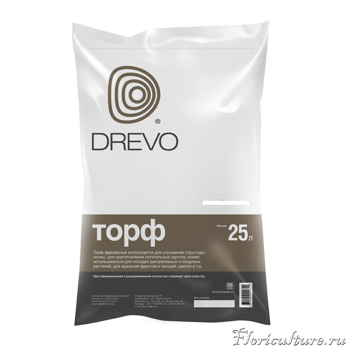 Верховой торф - содержит растительные волокна, которые улучшают водно-воздушное состояние почвы, обладает в своем составе такими питательными элементами, как гуминовые кислоты, особенно помогающие активному росту растений, специальные микроэлементы - азот, фосфор, железо, калий, кальций, магний.