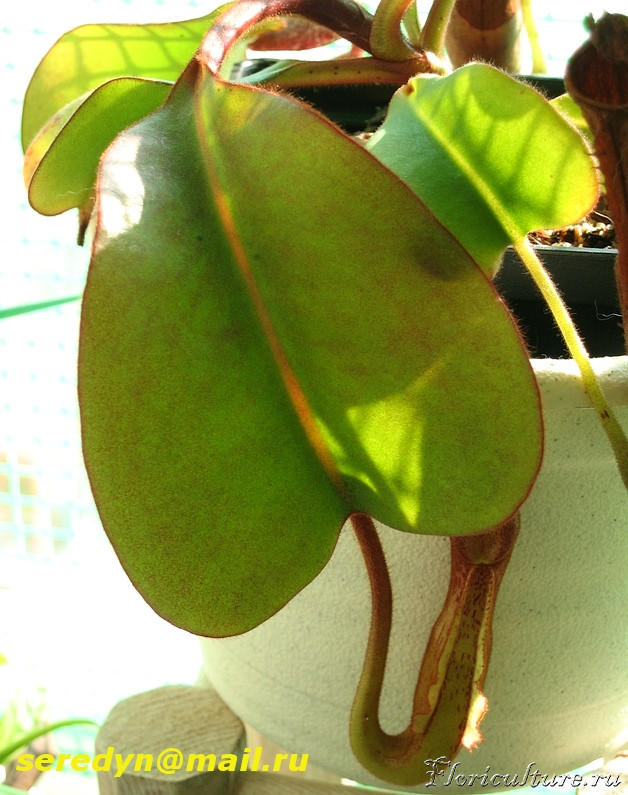 "Сердечный листик" N. clipeata x eymae вырос у растения со стороны солнечного окна: ...и здоровенный кувшин