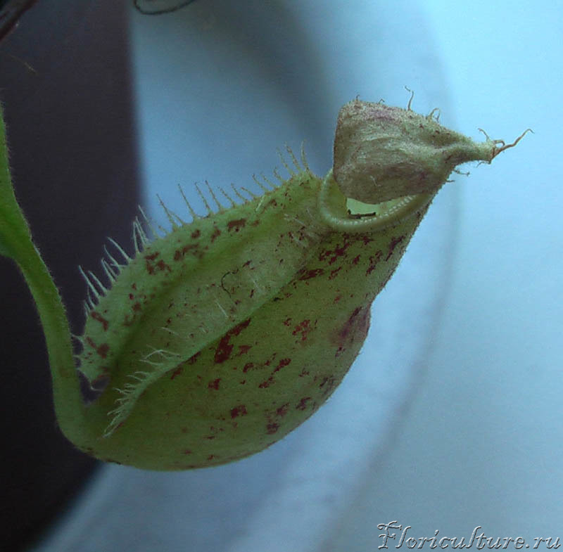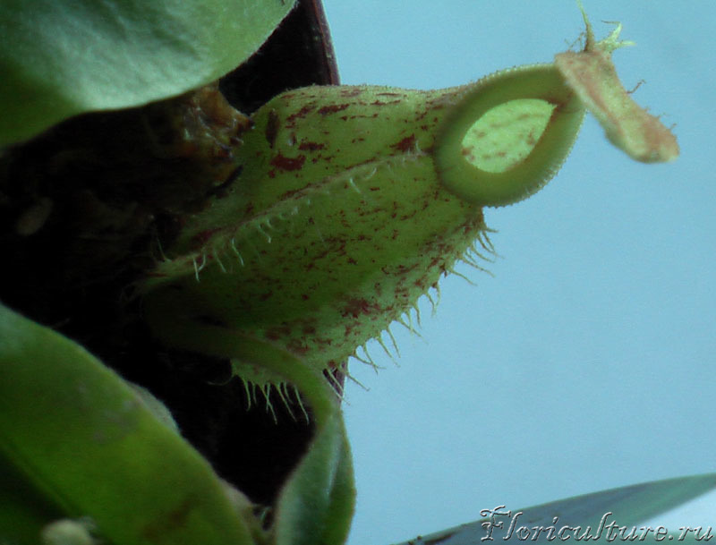 Загадочные кувшинчики Nepenthes reinwardtiana имеют трёхгранную форму с заострённой частью сзади: