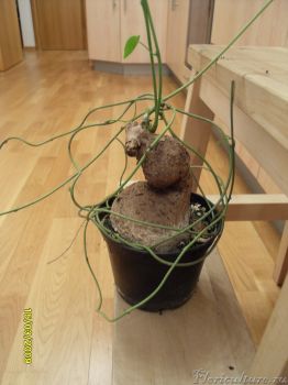 Первой приобрела ятрофу - причем сразу две. Одна - молоденькая и пока без бутылки, а другая - совсем странная - худой стволик, намека на каудекс вообще нет...
