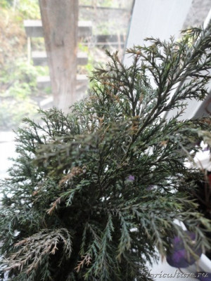 Фото сделаю вечером, вчера специально сломала одну веточку - на сломе зелененькая, но вообще-то веточки гнутся. Отваливаются при прикосновении маленькие кусочки - сантиметра 2-3, кончики. Ощущается живой запах хвои, так что мне кажется, еще не все потеряно.