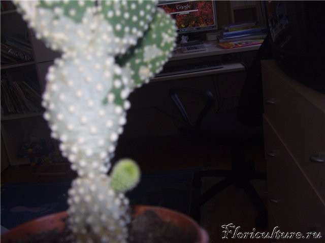 Что-то на этом сайте нет тем об опунции. А у меня она есть. Значит надо ее обсудить. :vip: Купил я ее не дорого. Была она красивая. Я ей даю кактусный полив, прямое солнце 4 часа в день, но при этом высокую влажность. Куктусиха эта съедобная( можно само растение варить в сахарном сиропе и есть), даже плоды дает. Но вот только зверь этот пушной. Да такой пушной, что если до него дотронуться, то Всю неделю этот колючий пух буду выковыривать. Я ее долго не пересаживал из магазинного субстрата. Она начала Покрываться белым налетом. Точно не Мучнистый червь. Потому что налет этот как краска. К тому же и не смывается. Что это? фото потом дам. Но недавно я ее пересадил. Вроде стал сходить налет, но остановился. Аж три новых листика начала растить. Даже что-то красное лезет. Не цветок ли это?