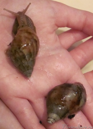 GoldFish,у меня нет в контейнере водоема.Они не плавают ,а очень любят купаться.Я своих купаю на руке, и в воде из под крана.Вы спрашивали про размер ракушки моим альбинкам на тот момент было 6 месяцев размер ракушки у одной была 12 см у второй 9 ,в данный момент размер такойже.Живут они в пластиковом контейнере из расчета на 1 улитку 10 литров.Вот вам ссылка на хороший сайт про ахатин