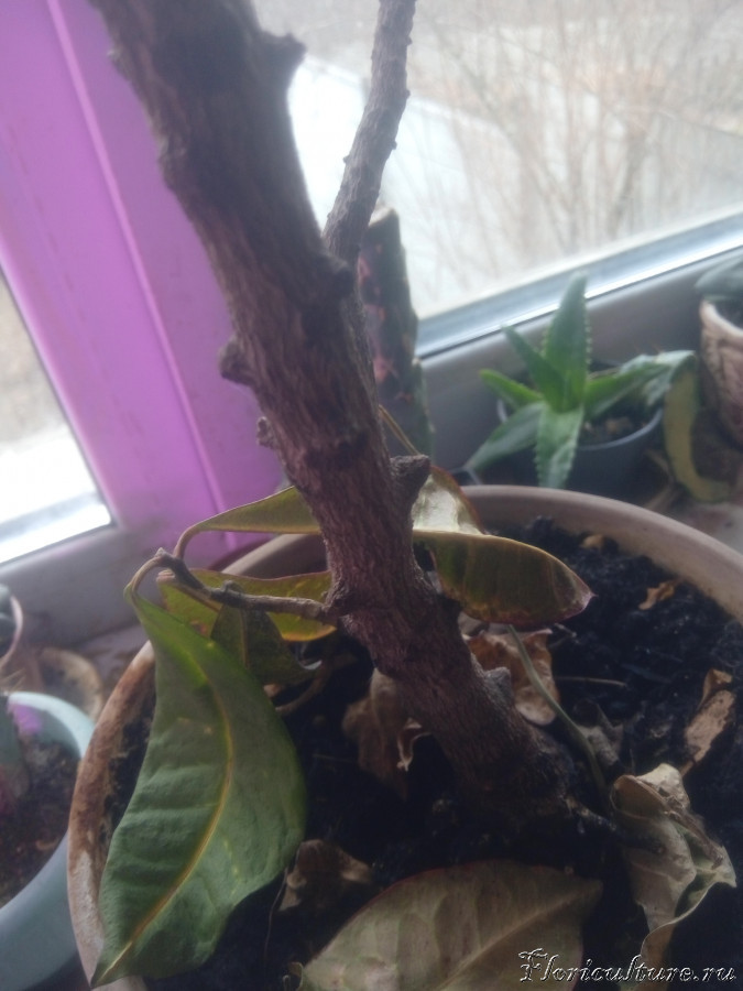 В начале весны был куплен кротон (голландский, крупный, около метра высотой). Через пару недель пересадили, прижился, выпустил много новых листьев, цвел... А через два месяца (в начале мая) начал массово сбрасывать листья. Сейчас почти голенький. Условия содержания не менялись, ну разве что отопление отключили. Вроде не заливали и не пересушивали. Вредителей не видно. Рядом стоит другой кротон и прекрасно себя чувствует.