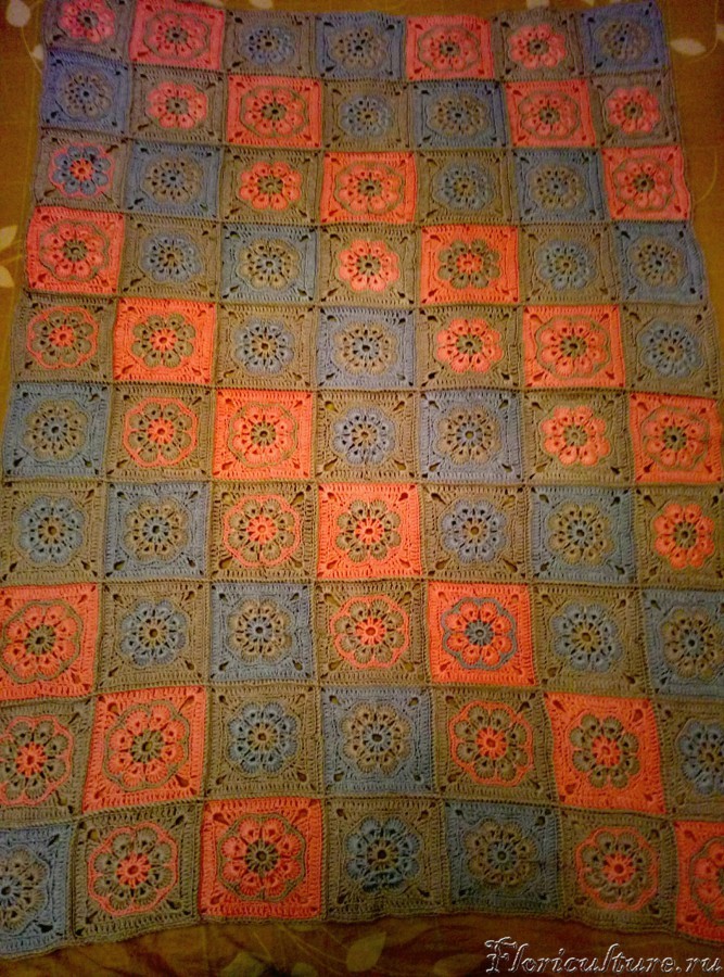 Для начала плед крючком из мотивов бабушкин квадрат из остатков ниточек.